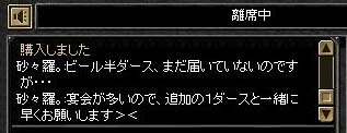 ちなみに、本日のPTMは… 一息したい方、ぜひご来店をお待ちしております。 ('∀')ノ″ おまけ 少し離席で露店放置していましたら、しっかりちゃっかりイヂられてました。 酒屋琉璃仙境でビールは取り扱っておりません。 (´・x・`)””” PR この記事にコメントする