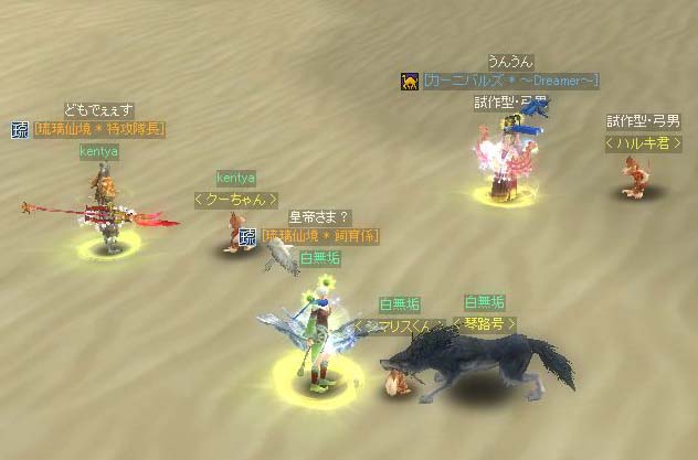 年末大掃除におわれている白無垢です。こにゃにゃちは。 ('-';)ゞ アップデートされてから、共同PTでのクエスト支援が出来るようになったので、 遣り残しの「樹液」と「白虎狩」… クエストアイテムは本人しか拾えないので、 狩り中の経験値は期待できませんが、早くクエを終了させたい人には大変便利です。 んでもって… 今度は、私が手伝ってもらいました。(爆 群れの中に突っ込んで、一掃しまくるケンさん。 ついでに琴路くんも育てれて一石二鳥でし。 ざっくざっくと狩り進めていたら、弓男さんに会いました。 そして巡回ついでに手伝っていただける事に…。 他所様にまで手伝ってもらう… 何とも情けないお話で、お恥ずかしい。 (/・ω・\) 二人の活躍のおかげでクエストは終了しました。 私も、自分よりLvの低い人達のお手伝いが出来れば、進んで手伝ってみよう。 PR この記事にコメントする